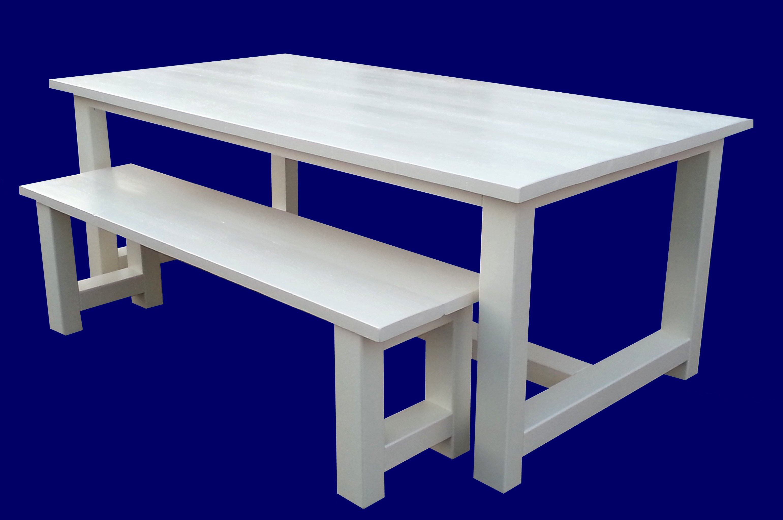 Bovenblad tafel en zitvlak bank: transparant mat gelakt